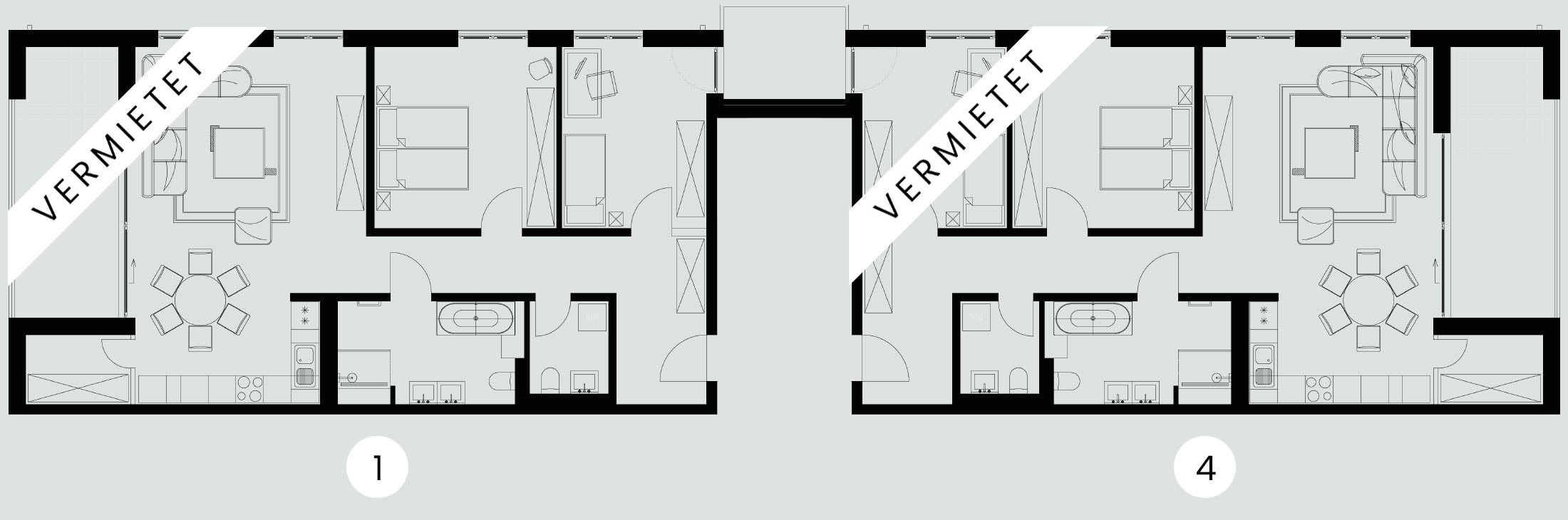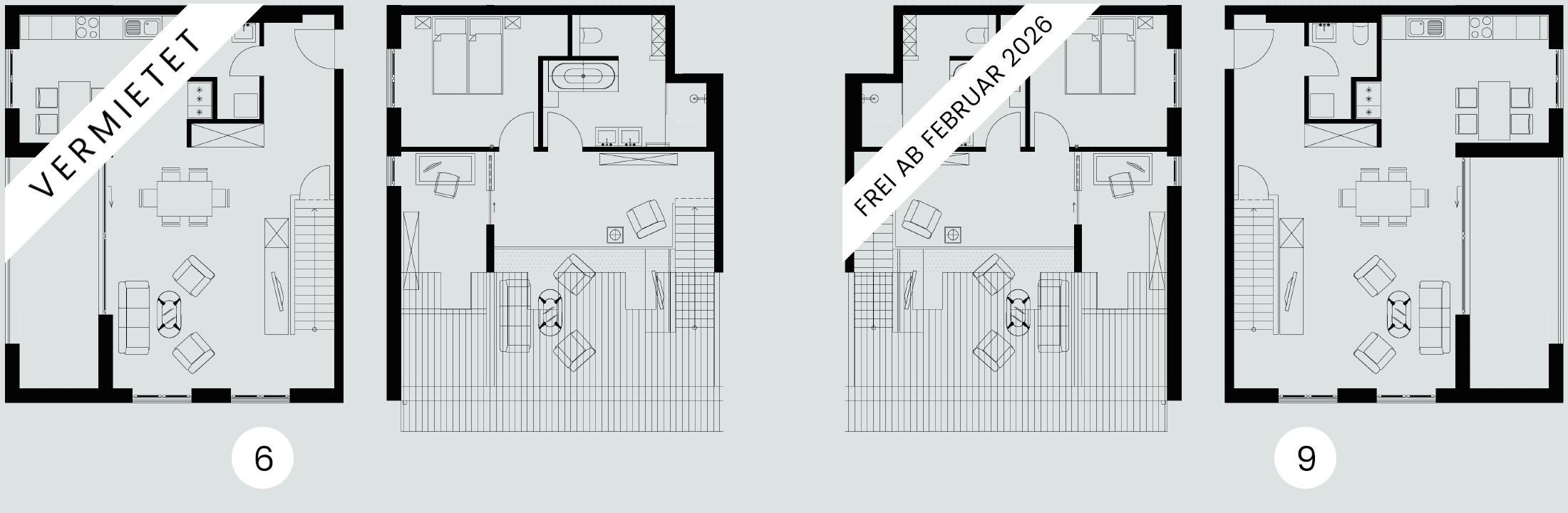 2 Maisonette-Wohnungen (4 Zimmer, 2 Bäder, Ankleide, Abstellraum und 2 Loggien) mit je ca. 123 m²